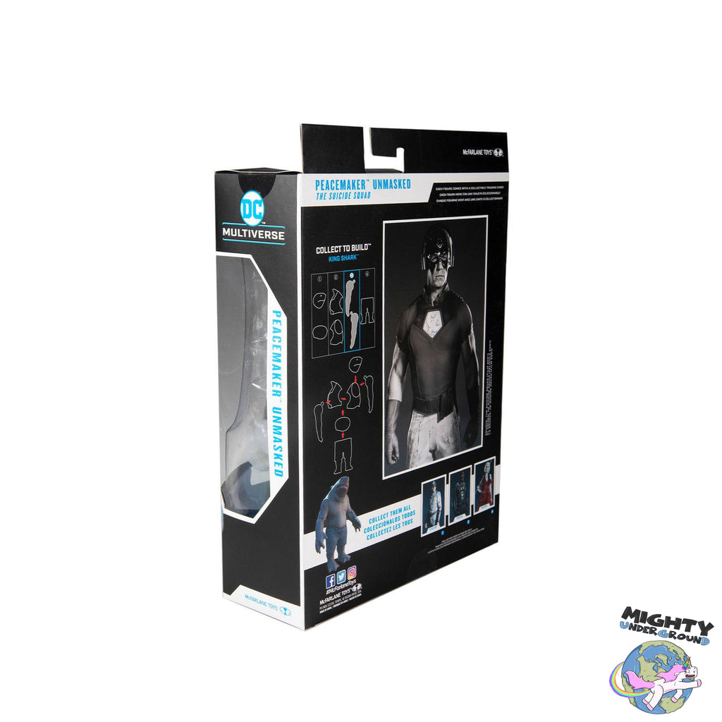 Jede Figur der "Build A" Reihe enthält 1 von 4 zusätzlichen Teilen. Hat man alle Teile, kann man damit einen ca. 30 cm großen King Shark zusammenbauen.