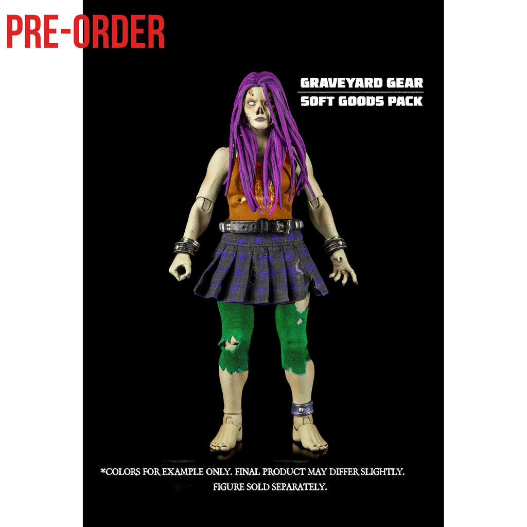 The Rocker Zombie Soft Goods Pack has her plaid skirt in blue, green torn leggings, a studded belt, and her death metal “FOUR HORSEMEN” t-shirt in orange!