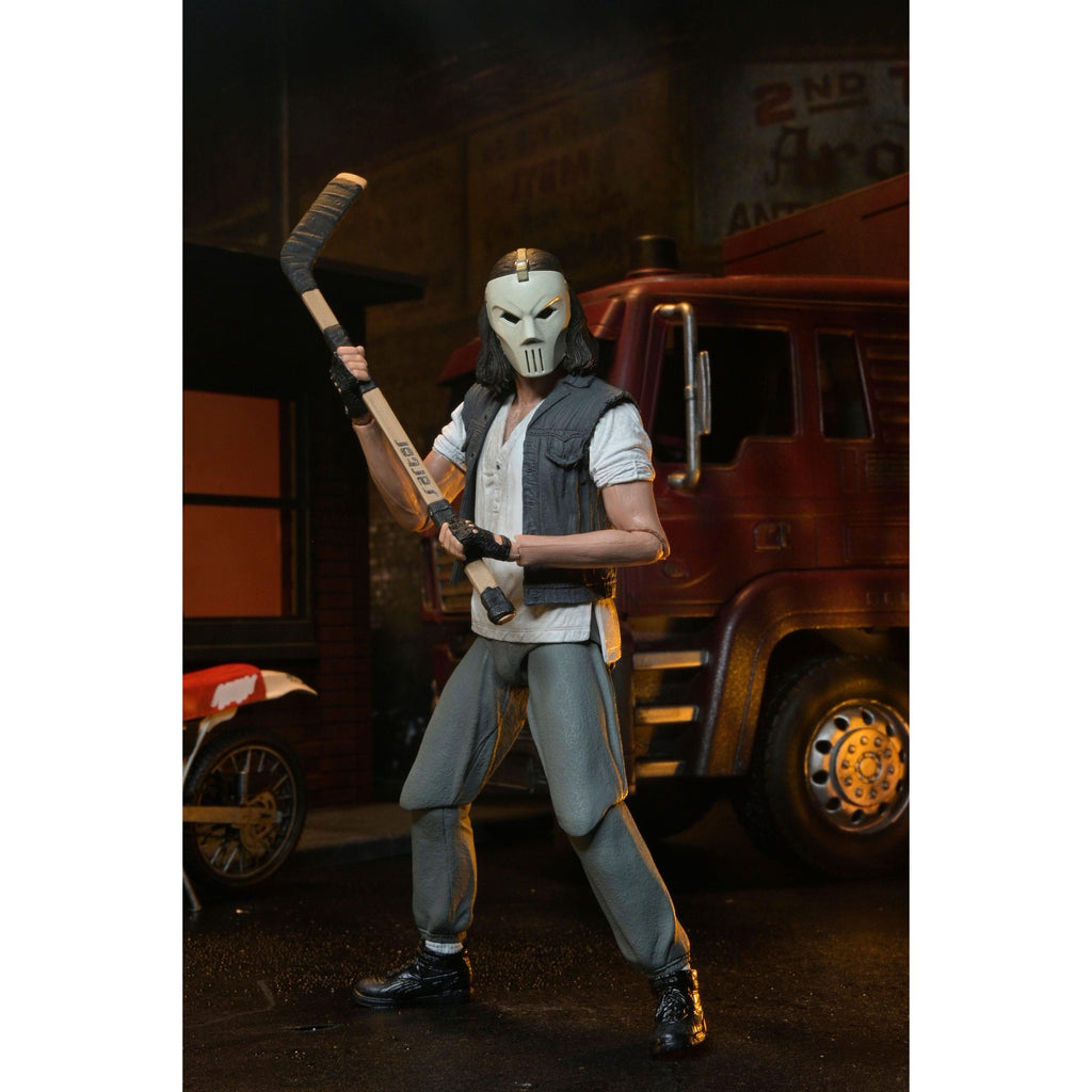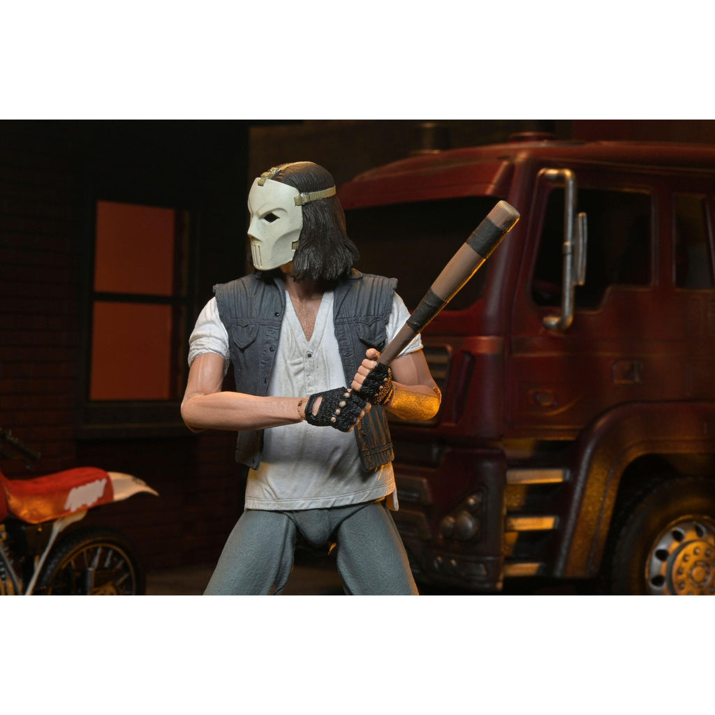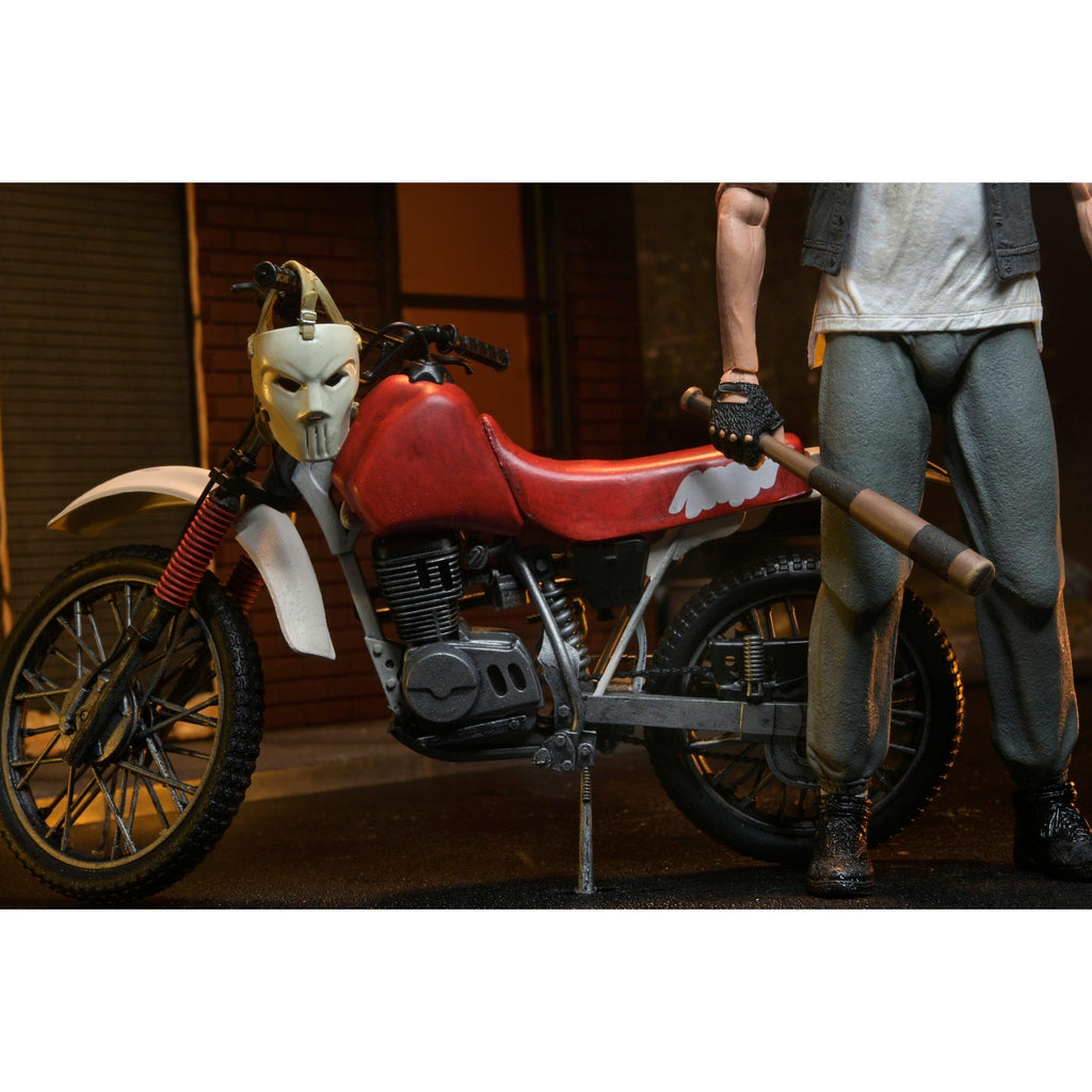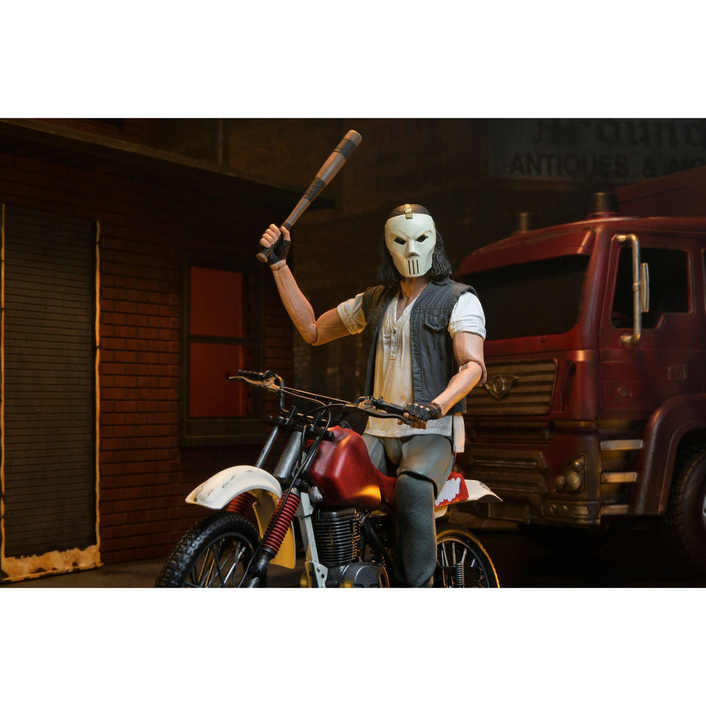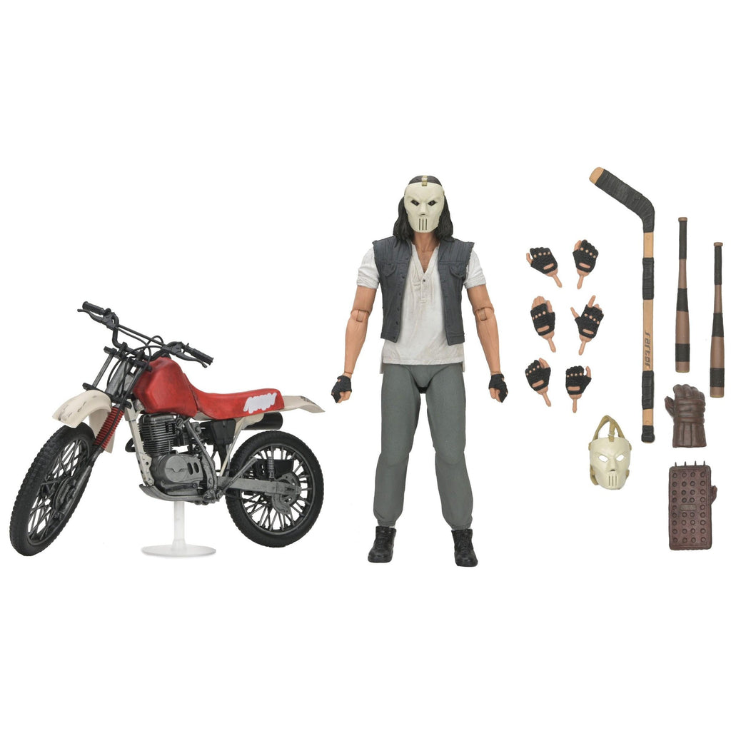 Everyone's favorite sports fanatic vigilante now has his own set of wheels! Straight from the first Teenage Mutant Ninja Turtles movie comes a new Casey Jones action figure from NECA. Standing in 7-inch scale, this figure is ready to ride into your TMNT collection with an arsenal of accessories, including dirt bike, interchangeable hands, battle-damaged mask deco, hockey stick, baseball bats, gloves, and more! Comes in collector-friendly window box packaging.