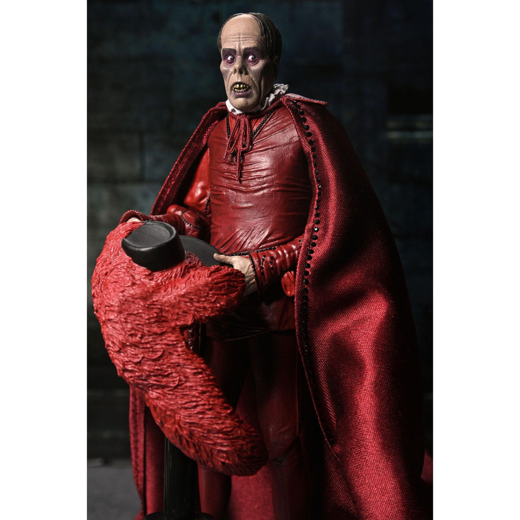 Featuring the Phantom (Erik) in his iconic "Red Death" disguise from the masquerade ball, this 7-inch scale figure captures the haunting elegance of Lon Chaney's classic portrayal.