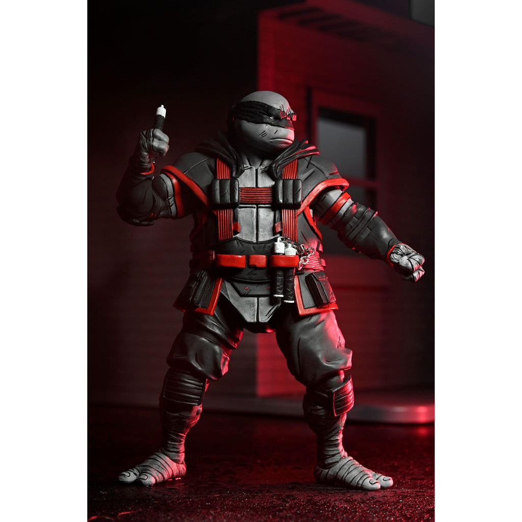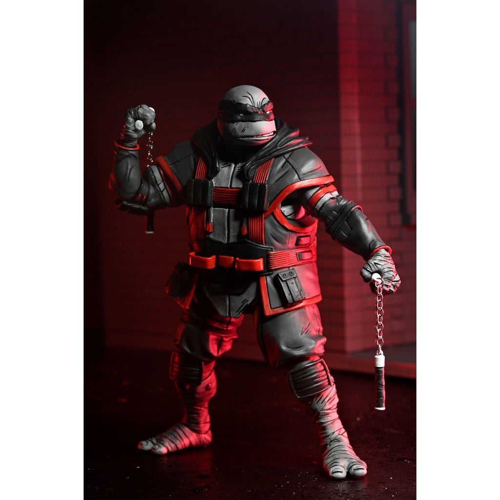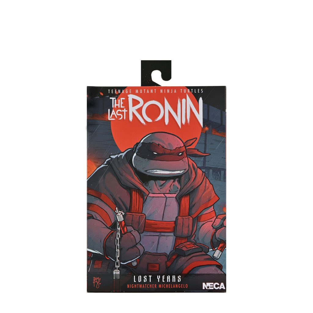From the Teenage Mutant Ninja Turtles comic book series, The Last Ronin - The Lost Years! The tale of the Last Ronin's first mission continues as new secrets from the Turtles' past are revealed. After Raphael has fallen, the remaining Turtles regroup and form the Nightwatchers along with April and Casey. Based on issue #3, this Michelangelo figure stands in 7-inch scale and features a stylized paint job for a comic-authentic look. Accessories include two heads, extra hands, and nunchucks! Comes in collector-friendly packaging with original illustrations by The Last Ronin artist Ben Bishop.